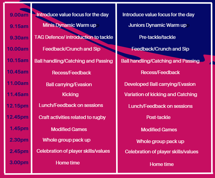 The holiday camps, for 5 to 13 year olds, and one on one sessions are available to girls and boys of all abilities and each experience is designed by coaches who understand the development level of your child. At Onside, we place great value on the use of mini-games to learn skills and the use those games to embed the values of world rugby into a session.